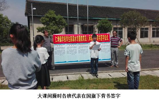 近日,该校除了按教育局开展防溺水“六个一”动做外(挂一张图、唱一首歌、发一封信、看一次专题片、上一次课、写一篇不雅后感),特添加一个“狠”动做:要求每个学生对《仁湾镇学校学生防溺水“六不”许诺书》到班从任处背字。勾当过程是:正在大课间操上,全校举行背字典礼,学校给每个班级教室黑板左边贴上一张永世性的《学生防溺水“六不”许诺书》,学生先集体背书,再人人到班从任处过关背书,最初个个正在《许诺书》上用记号笔签上本人的名字。这一勾当给学生思惟上很大的震憾,极大的提高了学生防溺水平安认识。(蒋剑中)。